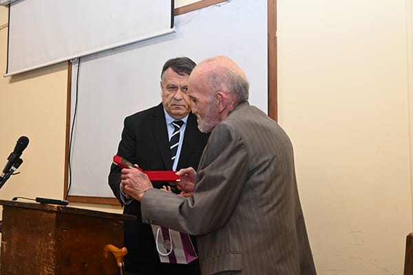 Проф. Вълчев връчи Почетния знак на ректора на Софийския университет „Св. Климент Охридски“ на Александър Димитров за гражданска доблест и за заслуги към демокрацията и свободата.
