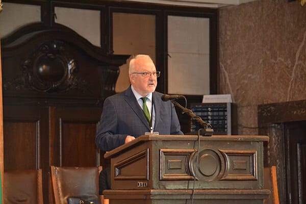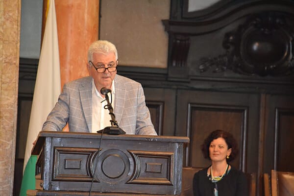 Приветствено слово от името на ректора на Алма матер проф. дфн Анастас Герджиков прочете проф. Мария Стойчева. В него проф. Герджиков отбелязва, че в българската история има редица значими събития, а Илинденско-Преображенското въстание е една от връхните точки в борбите на българите за национално освобождение. По думите му въстанието завинаги ще остане в историческата памет на българите като символ на героизма, жертвоготовността, смелостта и жаждата за свобода. Ректорът изразява увереността си, че отбелязването на тази знаменателна годишнина е възможност да се преклоним към подвига на онези наши предшественици, които не са се отказали, а са се борили с всички сили за своята свобода и независим живот.