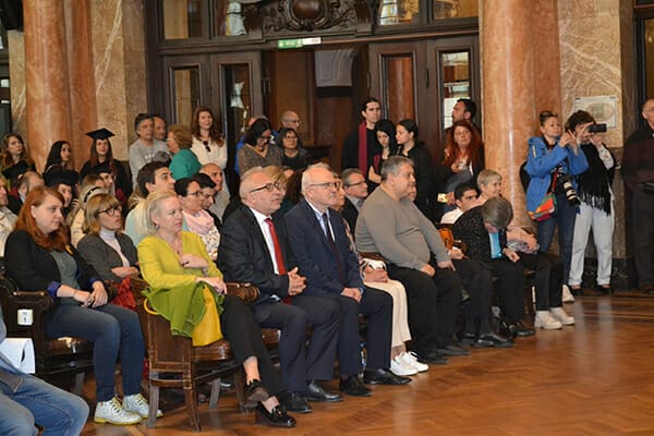 От името на завършващите поздрав поднесоха двете сестри и отличнички на випуска Иванела Маркова и Йоана Маркова от специалност „Архивистика и документалистика“. Те говориха за завършването на един етап от живота си, на който са посветили четири години. Години, изпълнени не само с учене, но и с непрестанен копнеж за развитие и надграждане. Те отбелязаха, че за тях е било чест да бъдат не само студенти в първия български университет, който сам по себе си е част от българската история, но и в неговия първи факултет – Историческия.