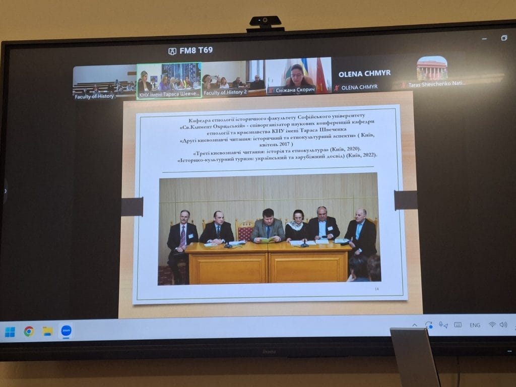 На 29. 10. 2025 г. с участието на студенти от първи и четвърти курс на специалност Етнология и културна антропология отбелязахме Деня на бесарабските българи чрез виртуална среща с колеги от Киевския национален университет „Тарас Шевченко“ и българската гимназия „Г. С. Раковски“ в гр. Болград. В срещата от страна на Софийския университет „Св. Климент Охридски“ се включиха проф. д-р Ренета Божанкова, зам. ректор на Софийския университет, проф. д-р Мира Маркова, декан на Историческия факултет, доц. д-р Алексей Кальонски, зам. декан на Историческия факултет, доц. д-р Милена Петкова- Роберг, зам. декан на Историческия факултет, доц. д-р Илия Илиев, преподавател в катедра „Етнология“ и гл. ас. д-р Райна Камберова, преподавател в специалност „Украинистика“ на Факултета по Славянски филилогии. От Киев във виртуалната среща участваха изпълняващият длъжността посланик на Република България в Украйна, НПр. г-жа Елена Слатинска-Ованезова, проф. Володимир Бугров, ректор на КНУ „Тарас Шевченко“, проф. Ксения Смирнова, зам. ректор на КНУ, проф. д-р Ярослав Кичук, ректор на Измаилския държавен хуманитарен факултет, г-жа Снежана Скорич, директор на българската гимназия „Г. С. Раковски“, гр. Болград, проф. д-р Марина Палиенко, ръководител на катедрата по Архивистика в КНУ, доц. д-р Наталия Терес, преподавател в катедрата по етнология на КНУ, доц. д-р Ростислав Конта, преподавател в катедрата по етнология на КНУ, доц. д-р Олена Чмир, българист, преводач, директор на Центъра за български език, литература, история и култура на КНУ „Тарас Шевченко“. Модератори на събитието бяха доц. д-р Ирина Малацай, ръководител на катедрата „История на страните от Централна и Източна Европа“ към КНУ и проф. д-р Мира Маркова. Приветствие от името на ректора на Софийския университет, проф. д-р Георги Вълчев, поднесе проф. д-р Ренета Божанкова, която говори за научните връзки между двата университета и ролята на бесарабските българи, които са допринесли за развиването на академичната идея за модерно висше образование в България. Проф д-р Ренета Божанкова припомни дейността на проф. Александър Теодоров –Балан, пръв ректор на СУ, родом от с. Кучубей, Бесарабия. Много интересни доклади изнесоха доц. Кальонски върху миграционните движения на българи към Бесарабия и Таврия и доц. д-р Илия Илиев, който представи същината на есето на проф. Иван Шишманов за Тарас Шевченко. Пространен доклад за научните връзки между катедрата по етнология на СУ и катедрата по етнология на КНУ, представи доц. д-р Наталия Терес, която припомни и дейността в тази посока на напусналите ни без време наши колеги проф. днк Веселин Тепавичаров и доц. д-р Мирелла Дечева.