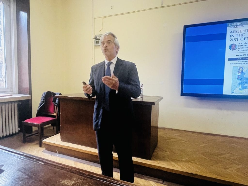 Посланикът на Аржентина Н.Пр. Алехандро Зотнер Майер изнесе в Историческия факултет публична лекция на тема “Аржентина през 21 век”. В своята пространна презентация той направи историческа ретроспекция на политическото и икономическото развитие на Аржентина, като постави акцент върху съвременните предизвикателства, пред които страната е изправена и мястото и в региона на Латинска Америка и в света.